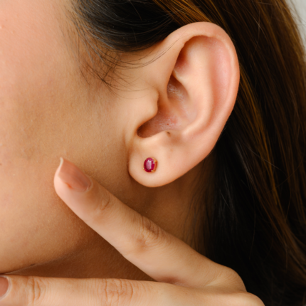 18k Solid Gold Ruby Oval Studs