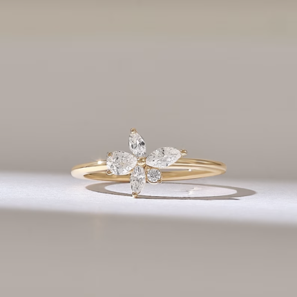 0.5Ct Natural Diamond Butterfly Ring: Nature-Inspired Marquise Cut Floral Statement