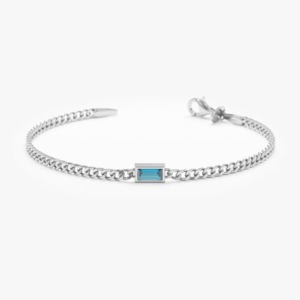 18k Solid Gold Blue Topaz Cuban Chain Bracelet