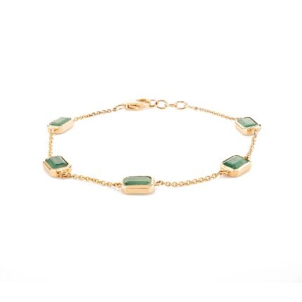 A refined 18K solid gold chain bracelet set with five vivid emeralds—an elegant, everyday piece with timeless colour and effortless layering appeal.