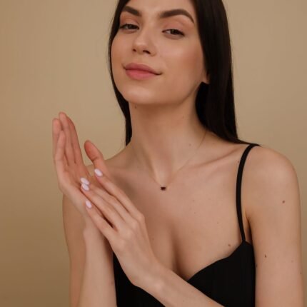 Elegant 18k solid gold ruby necklace, combining the deep red of rubies with a refined design for a sophisticated and timeless accessory.