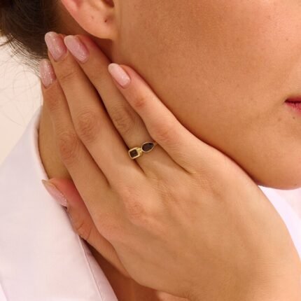18K Solid Gold Smoky Gray Toi et Moi Ring