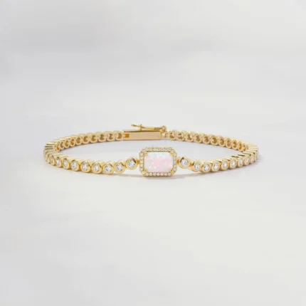 Opal Tennis Bracelet, Moissanite Diamond Tennis Bracelet, gold tennis bracelet