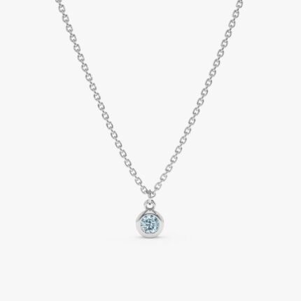 Embrace serenity with our Aquamarine Charm Necklace. Handmade from solid gold, featuring a genuine aquamarine gemstone in a classic bezel setting for a calming touch of elegance.