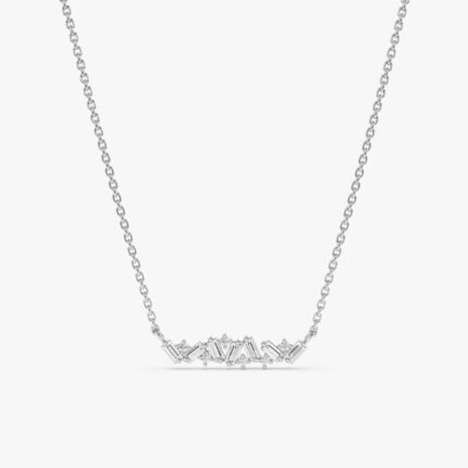 Elevate your style with our Baguette Natural Diamond Cluster Necklace, showcasing a stunning cluster of diamonds in elegant baguette and round cuts.