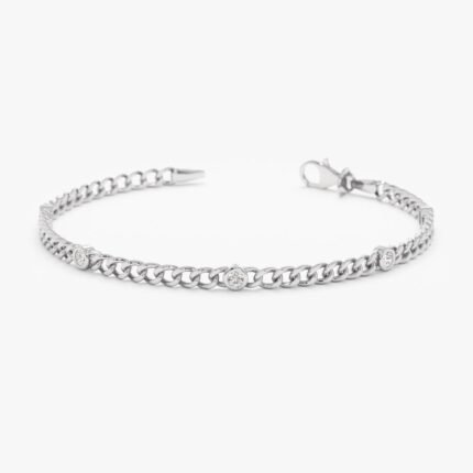 A high-shine 14K Cuban link bracelet finished with five bezel-set natural diamonds for confident, everyday luxury.