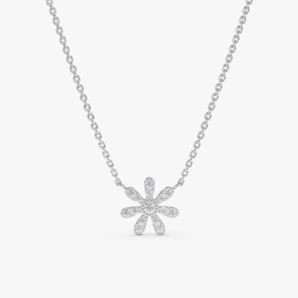 Embrace the essence of springtime elegance with our charming Diamond Daisy Necklace. Crafted from solid yellow gold, the pendant features a sparkling diamond nestled within delicate diamond petals for a touch of classic charm.