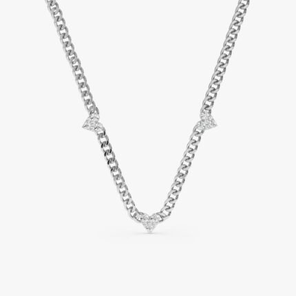 "Elevate your style with our Diamond Heart Cuban Chain Station Necklace, featuring delicate 18k gold chain adorned with sparkling diamond hearts."