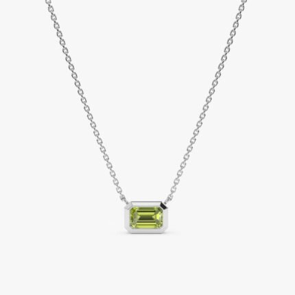 Radiate serenity and elegance with our Peridot Necklace, featuring a vibrant octagon-cut peridot gemstone set in solid gold, meticulously handcrafted for a stunning visual impact.