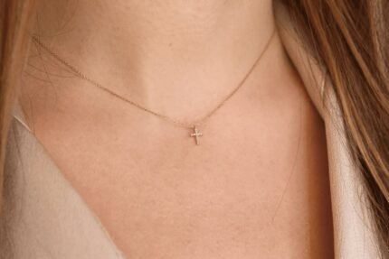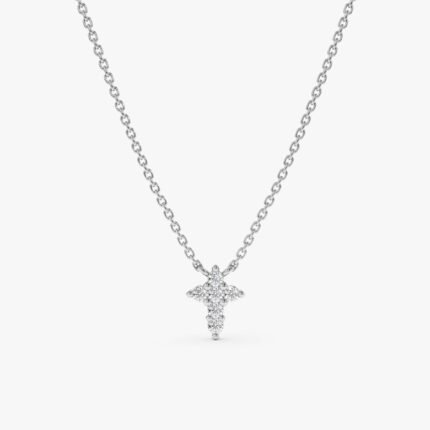 Elevate your faith with our Petite Diamond Cross Necklace, featuring a dainty cross pendant adorned with sparkling diamonds in solid 18k gold.