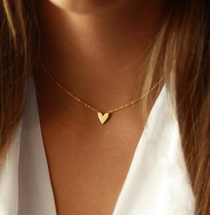 The Karat Store's Minimalist Heart Gold Necklace showcases a simple, elegant heart pendant in gold. This timeless piece adds a touch of sophistication to any outfit, perfect for daily wear or special occasions.