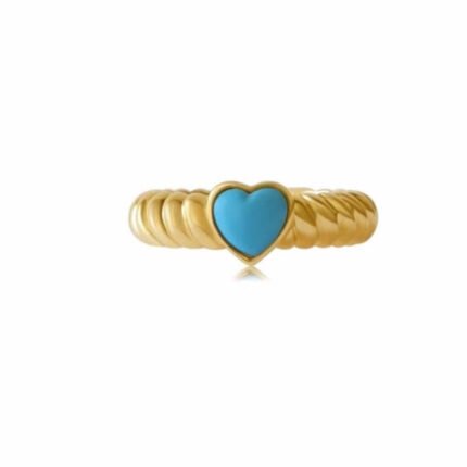 Charming 14K solid gold twist ring featuring a heart-shaped turquoise—crafted for playful elegance, vibrant color, and everyday sophistication.