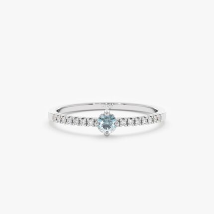 Delicate 14K gold ring with a 0.12ct aquamarine and 0.11ct natural diamonds—perfect for alternative bridal styles or meaningful March gifts.
