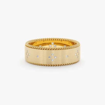 Get this Product in 14KÂ Gold18k solid gold fluted diamond wedding band with 0.08 ctw GH/VS-SI natural diamond. Unique textured design in yellow, white, or rose gold.