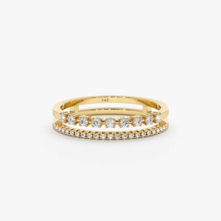 Get this Product in 14KÂ Gold18k Gold Double Diamond Band with 0.20 ct GH/VS-SI natural diamonds. Dual 1.3 mm bands, 3 mm total width. GIA & BIS certified.