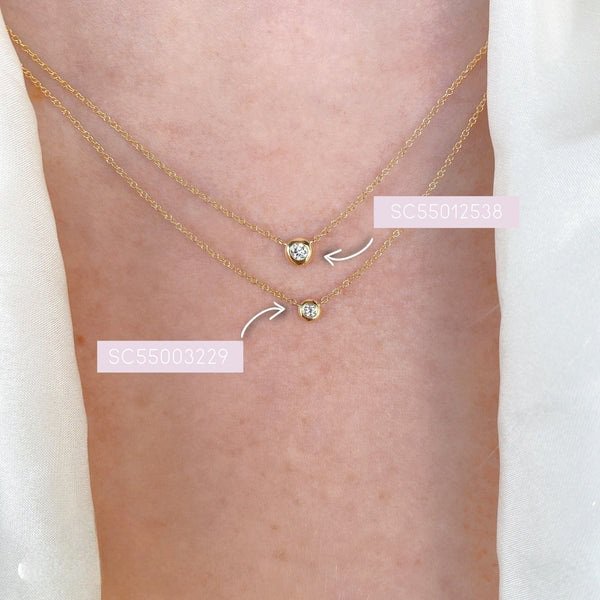 Each necklace is crafted with meticulous attention to detail, ensuring that every piece is as unique as the individual wearing it. The bezel setting not only enhances the diamond’s sparkle but also provides a secure and stylish frame that highlights its natural beauty. Available in various bezel sizes, including 0.03 ctw (3 mm), 0.08 ctw (3.8 mm), and 0.12 ctw (4.3 mm), you can choose the perfect fit to match your personal style or to layer with other pieces from our collection.