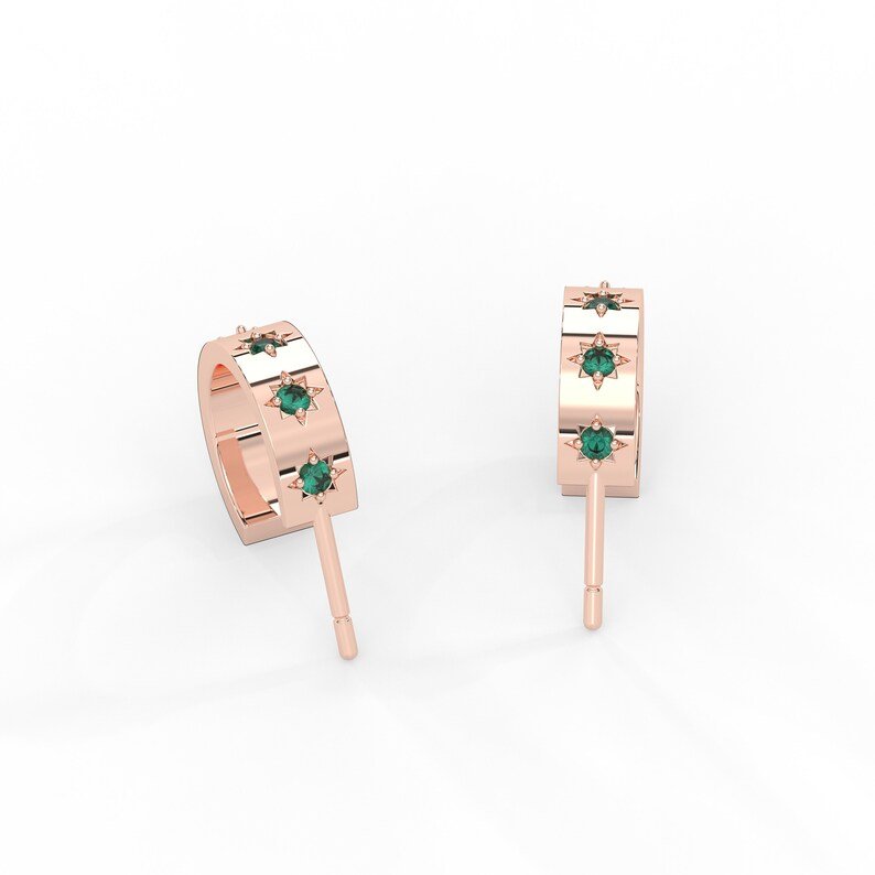 14K Solid Gold 1.5 MM wide Hoop Natural Emerald earrings, Hoop Earrings, Emerald Jewelry