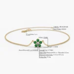 The total carat weight of emeralds is 0.12 Ctw while the diamond adds an extra 0.04 Ctw. All of these are mounted using the prong setting method for durability and style. Its dimensions are 5.75 x 5.75 MM, making it the ideal charm bracelet for a casual or formal affair and giving a touch of class to any outfit.