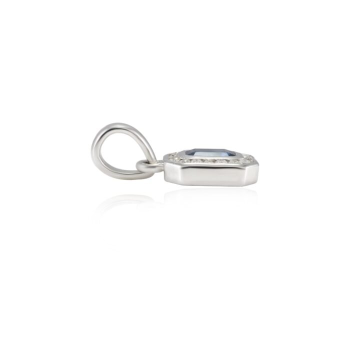Weighing 1.99 grams, this pendant offers a lightweight yet luxurious feel, making it ideal for everyday wear or special occasions. The elegant design ensures that the sapphire and diamonds remain the focal points, allowing their beauty to shine through. The channel setting provides a secure and stylish way to showcase the gemstones, enhancing the overall appeal of the pendant.