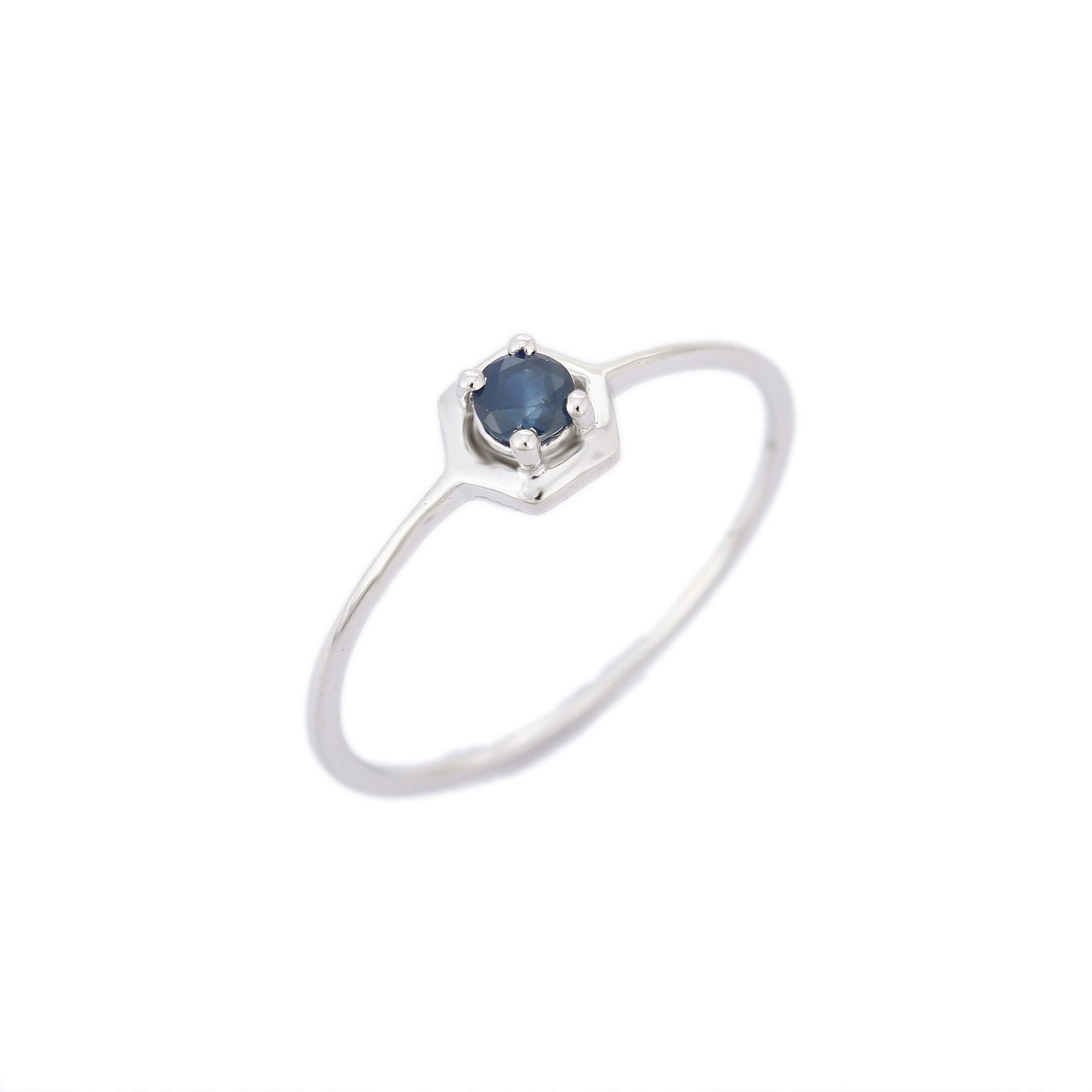 Experience the allure of blue sapphire and the luxury of white gold with this exquisite stacking ring. Its classic design and radiant gemstone make it a versatile and timeless piece, perfect for any jewelry lover. Add a touch of elegance and sparkle to your collection with this stunning ring.