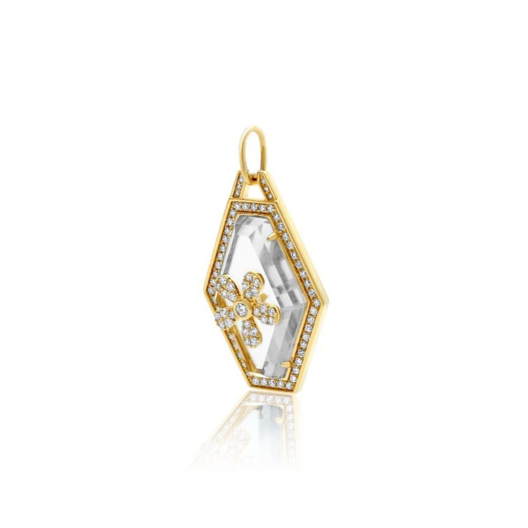 The combination of diamonds and white topaz in the floral design creates a harmonious blend of classic elegance and modern flair. The pendant’s design is versatile, making it suitable for both formal occasions and everyday wear. It can be worn as a statement piece or paired with other jewelry for a more personalized look.