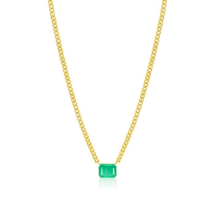 Bold 14K solid gold curb link necklace accented with emeralds—crafted for modern sophistication, vibrant color, and timeless elegance.