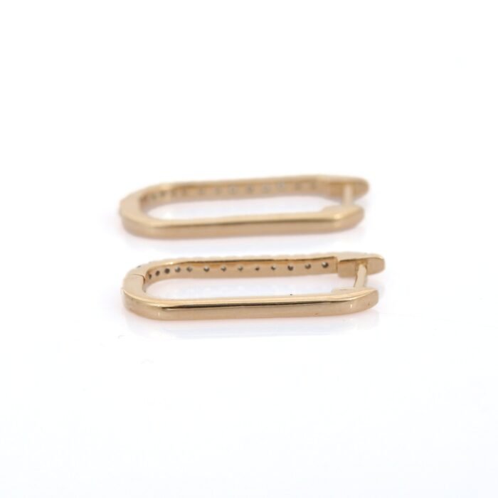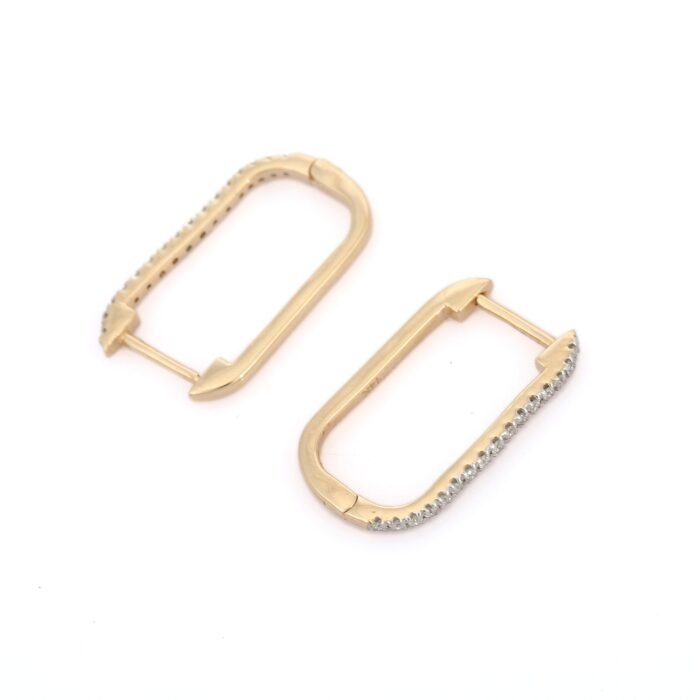 Crafted from 14K solid yellow gold, the earrings provide a warm and luxurious backdrop that complements the diamonds’ natural shine. The pave setting ensures that the diamonds are securely held while allowing their full radiance to be visible. This design choice creates a seamless and dazzling effect that catches the light from every angle.