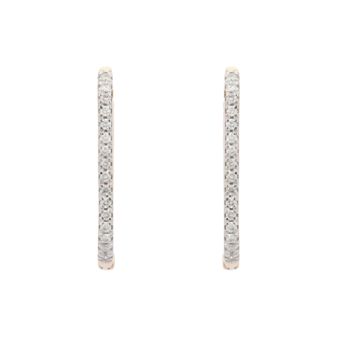 Weighing 1.58 grams, the earrings are lightweight and comfortable, making them ideal for all-day wear. The classic hoop design is versatile and can be worn with a variety of outfits, from casual daywear to elegant evening attire. The combination of yellow gold and diamonds adds a touch of timeless elegance, making these earrings a standout accessory for any occasion.