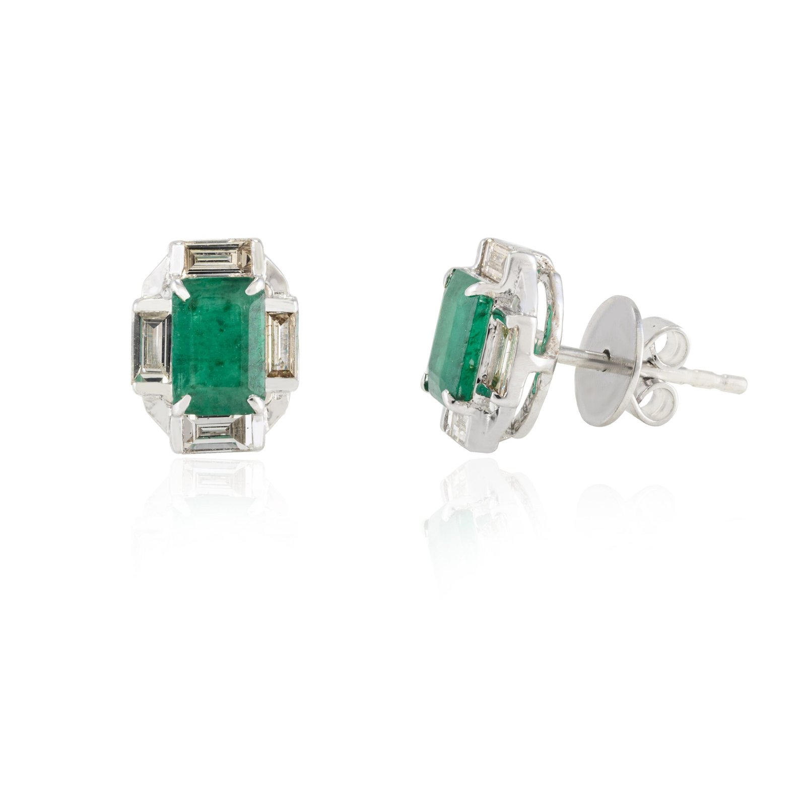 Weighing 2.91 grams, these stud earrings offer a substantial yet comfortable feel, making them ideal for everyday wear or special occasions. The elegant design ensures that the emeralds and diamonds remain the focal points, allowing their beauty to shine through. The prong setting provides a secure and stylish way to showcase the gemstones, enhancing the overall appeal of the studs.