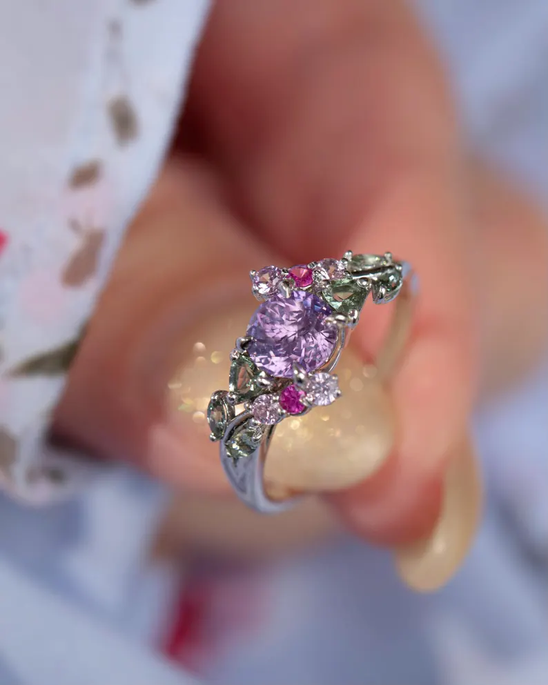 Whether chosen as an engagement ring, a birthstone treasure, or a special piece of self-expression, the Enchanted Garden ring is a wearable work of art. Each ring is handcrafted and made to order, ensuring no two are ever exactly alike. It’s a celebration of individuality, fantasy, and fine craftsmanship — beautifully suited for anyone who believes in the magic of nature.
