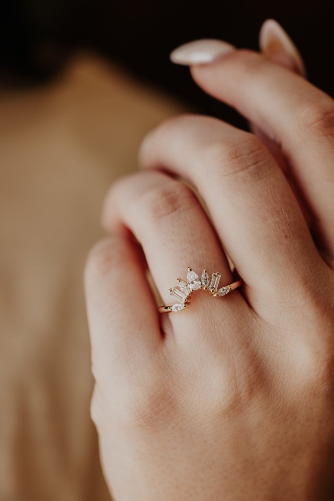 Adorned by luxurious gold, with stunning diamonds, it beautifully gives the person wearing it extraordinary artisan-craft quality while retelling a very precious story with grace and allure. Make that enchanting ring part of your collection with these enchantments-it shall adorn them for quite some time from this end.