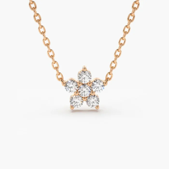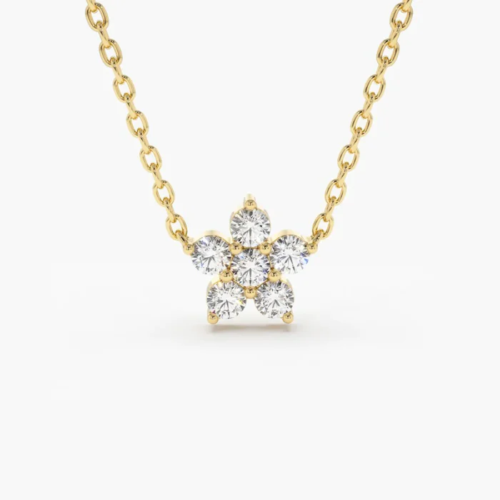 - Product Name:Â 14K Gold Flower Charm Diamond Necklace