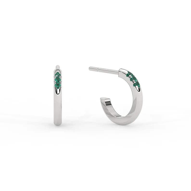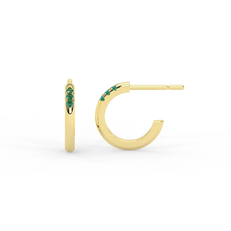 Timeless 14K solid gold hoop earrings adorned with vivid emeralds—crafted for elegant sparkle, rich color, and everyday sophistication.