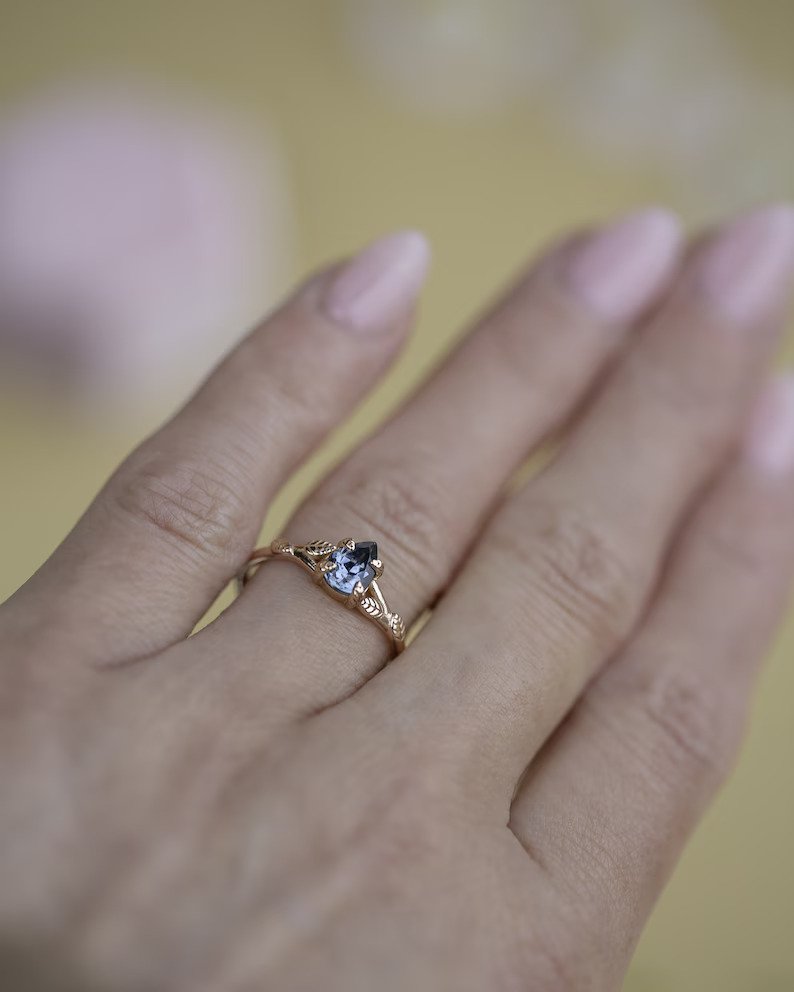 Perfect for the nature-loving bride or anyone drawn to artisan jewelry with a personal touch, this engagement ring captures the essence of individuality and commitment. Each ring is made-to-order, ensuring no two are exactly alike. Certified and ethically crafted, it comes beautifully packaged and ready for a lifetime of love. A symbol of natural beauty, personal growth, and enduring love, this Montana sapphire leaf ring is more than jewelry — it’s a story you wear every day.