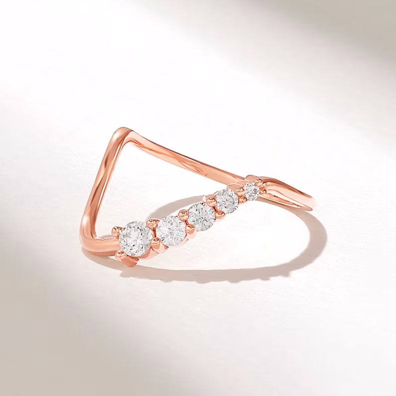 Adorned with 0.36 ctw of natural diamonds, each stone is meticulously selected for its GH color and VS-SI clarity, offering brilliant sparkle and refined elegance. The wave-like curve makes it a perfect match for solitaires or other engagement rings, hugging their shape while adding texture and shimmer.