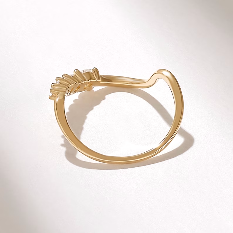 14k Gold Natural Diamond Wave Stacking Ring: Curved Contour Wedding Band for Women