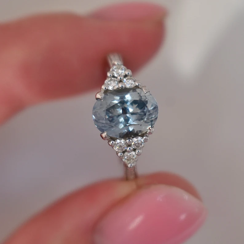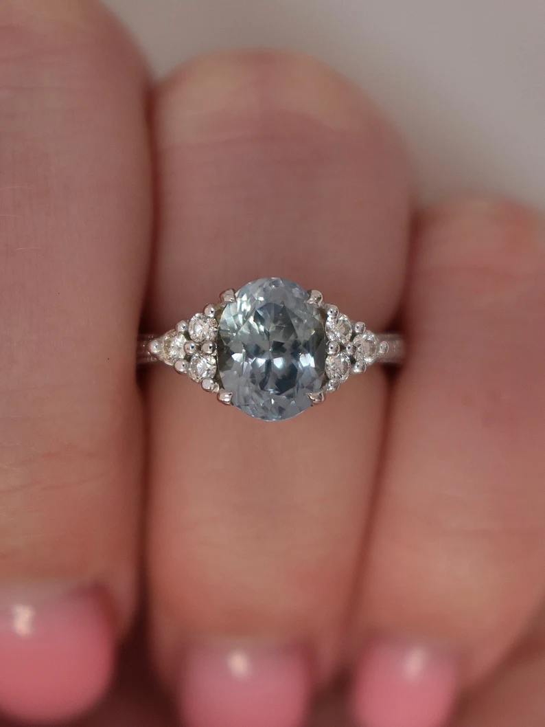 - Main Stone: Natural Aqua Blue Montana Sapphire (2-2.3 ct, Oval Shape)