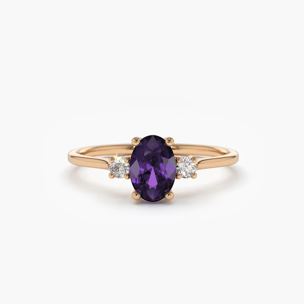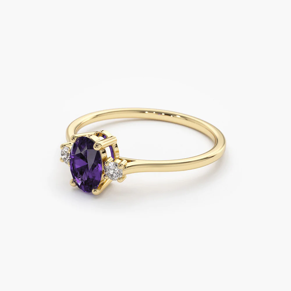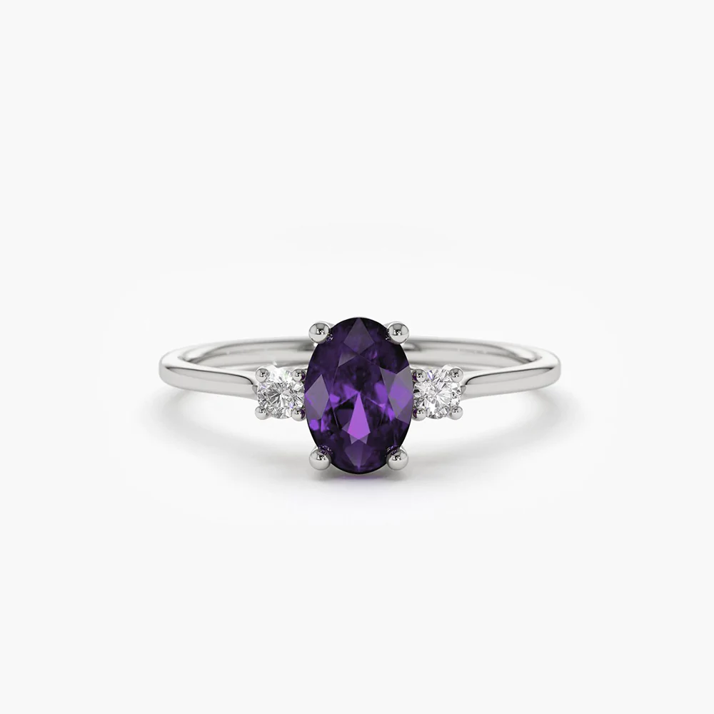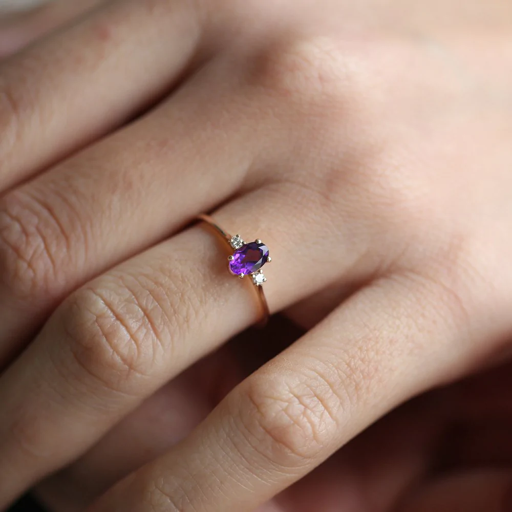 - Gemstone: Oval Amethyst (6×4 mm)
