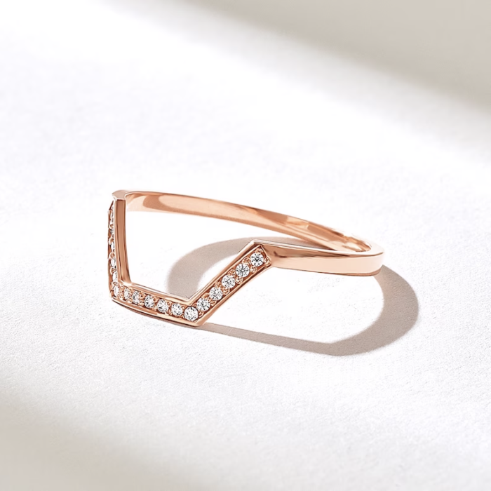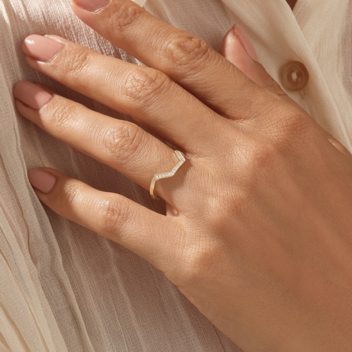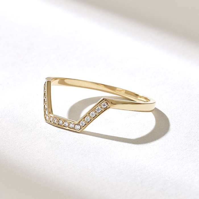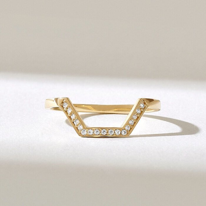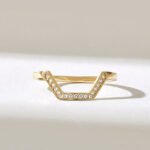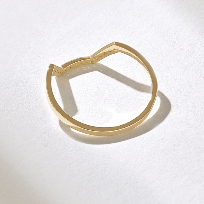 14K solid gold V-shaped nesting ring with 0.14ct natural diamonds. Elegant, stackable, and perfect for contouring engagement rings.