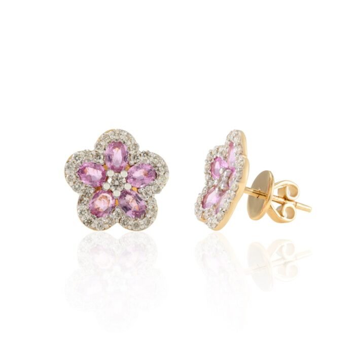 The pink sapphire cherry blossom design on these earrings is delicate and beautiful. Perfect for adding a touch of nature to any outfit.