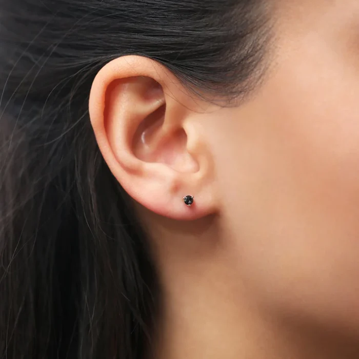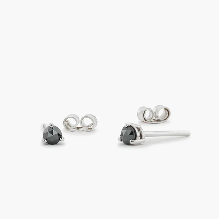 Earrings feature exquisite rose-cut black lab-grown diamonds, which offer a sleek and modern appeal. In fact, the rose-cut design reveals the natural shine and texture of the black diamonds. They are available in white, yellow, and rose gold and are versatile as they complement any style to add elegance and sophistication to any outfit.