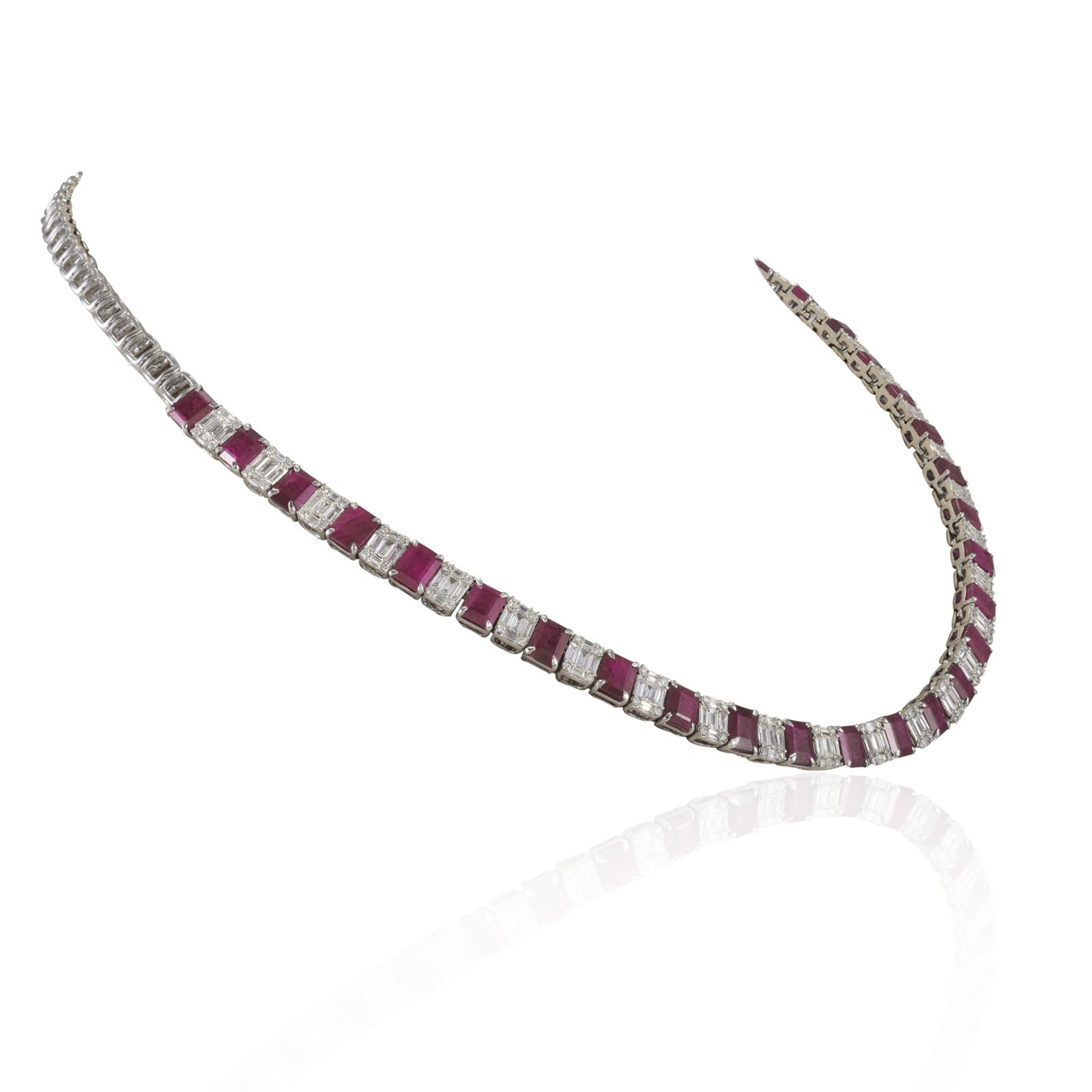 This necklace is a statement piece. The combination of rubies and diamonds is breathtaking.