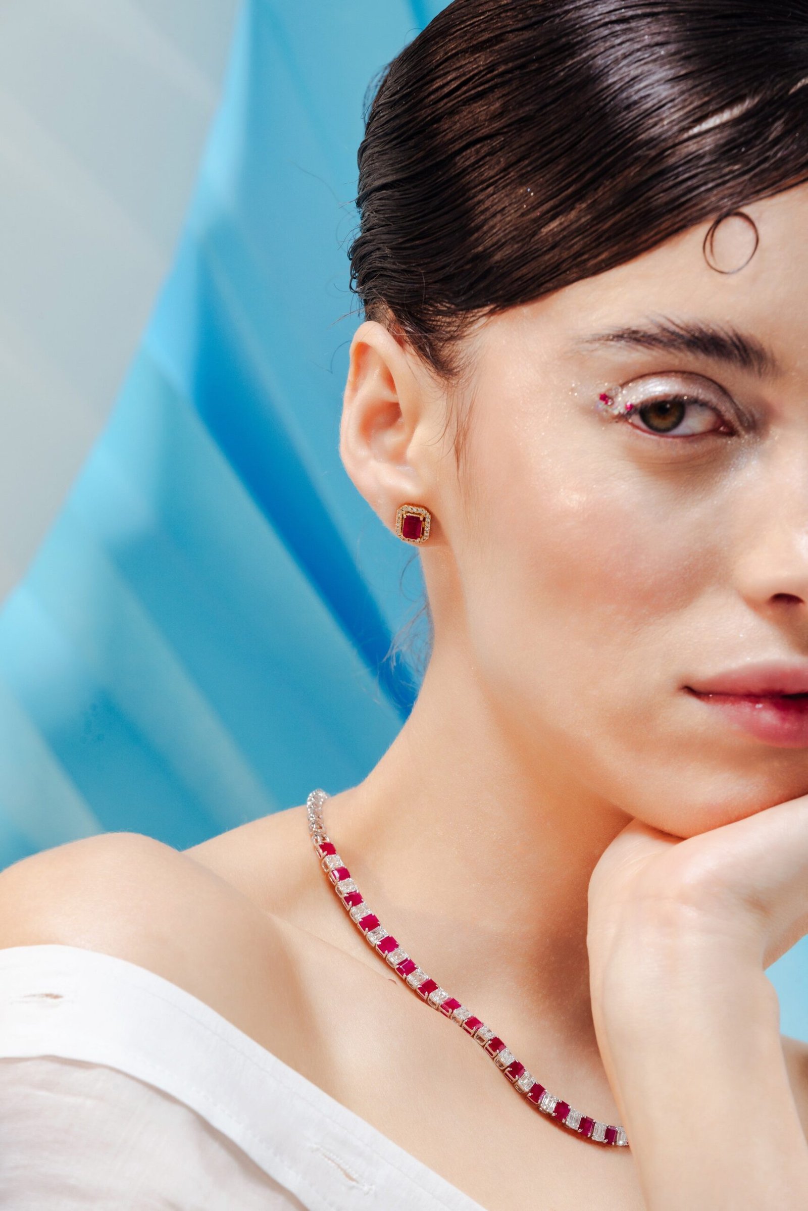 I love the luxurious feel of this necklace. The rubies are vibrant, and the diamonds complement them perfectly.