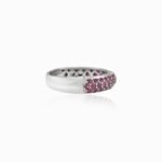 Weighing 4.36 grams, this ruby dome style band offers a luxurious feel, making it ideal for everyday wear or special occasions. The elegant design ensures that the rubies remain the focal points, allowing their beauty to shine through. The sophisticated pave setting provides a secure and stylish way to showcase the gemstones, enhancing the overall appeal of the ring.