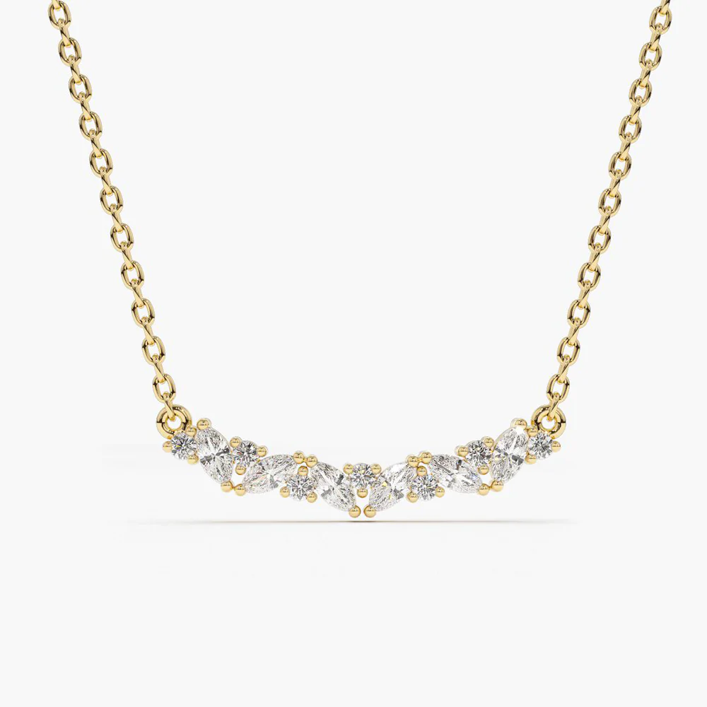 14K Gold Slanted Marquise and Round Natural Diamond Necklace
