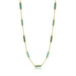 Elegant 14K solid gold necklace featuring spaced rectangular turquoise stones—crafted for minimalist charm, vibrant color, and modern style.