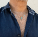 The 14K Solid Gold Spaced Rectangle Turquoise Necklace is a sophisticated accessory that beautifully combines the luxurious appeal of 14k gold with the vibrant hue of turquoise. This necklace showcases a unique design featuring spaced turquoise rectangles, each set in high-quality gold, creating a modern yet timeless piece.