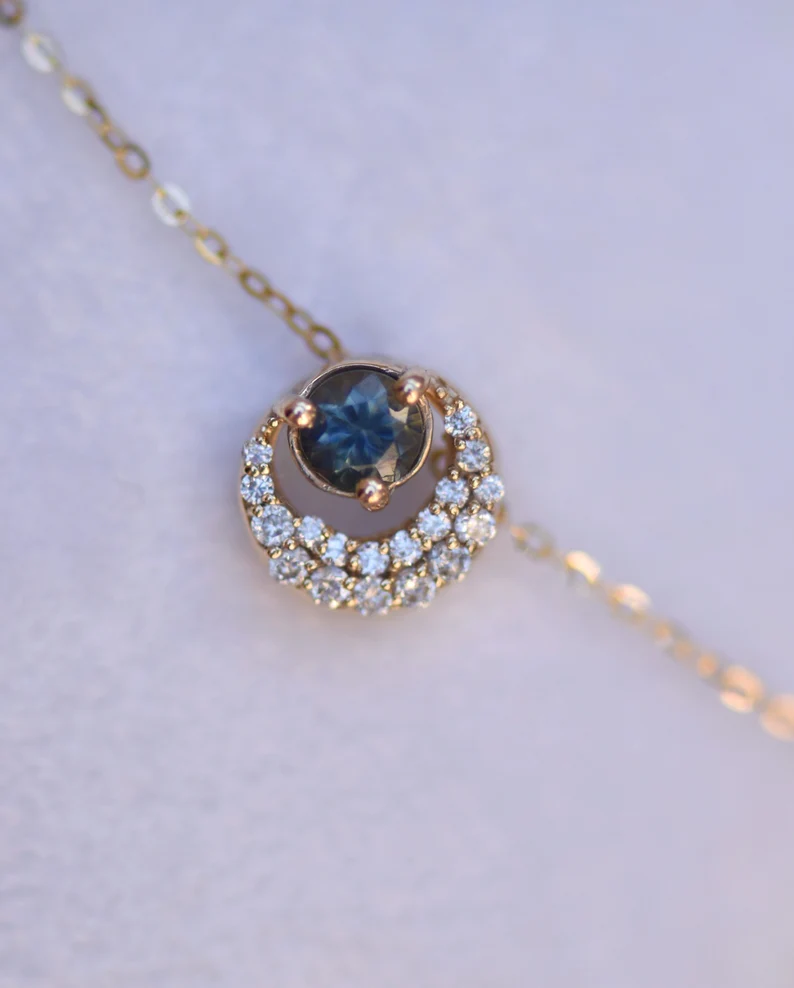 Be the first to review “14K Gold Sun and Moon Necklace Natural Montana Sapphire and Diamonds” Cancel reply