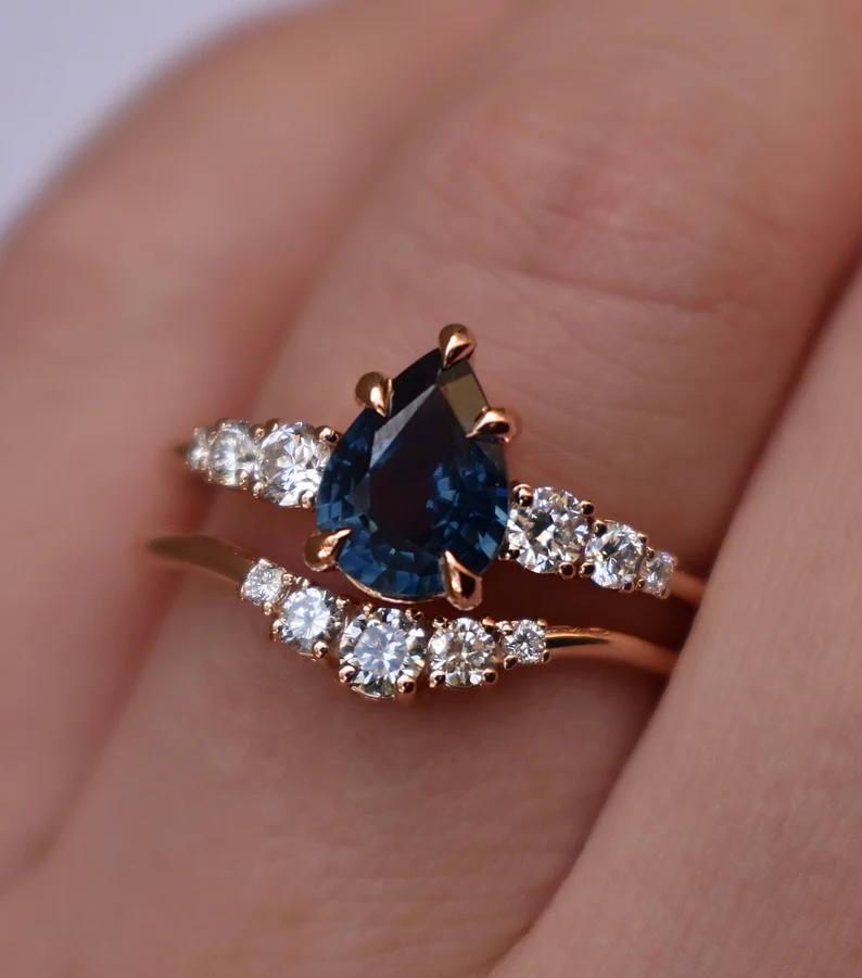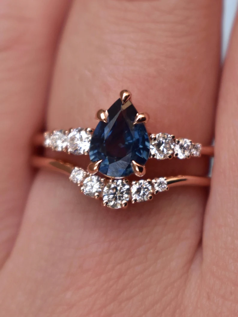 - Main Stone: Natural Teal Blue Sapphire (Approx. 1.1-1.3 ct)