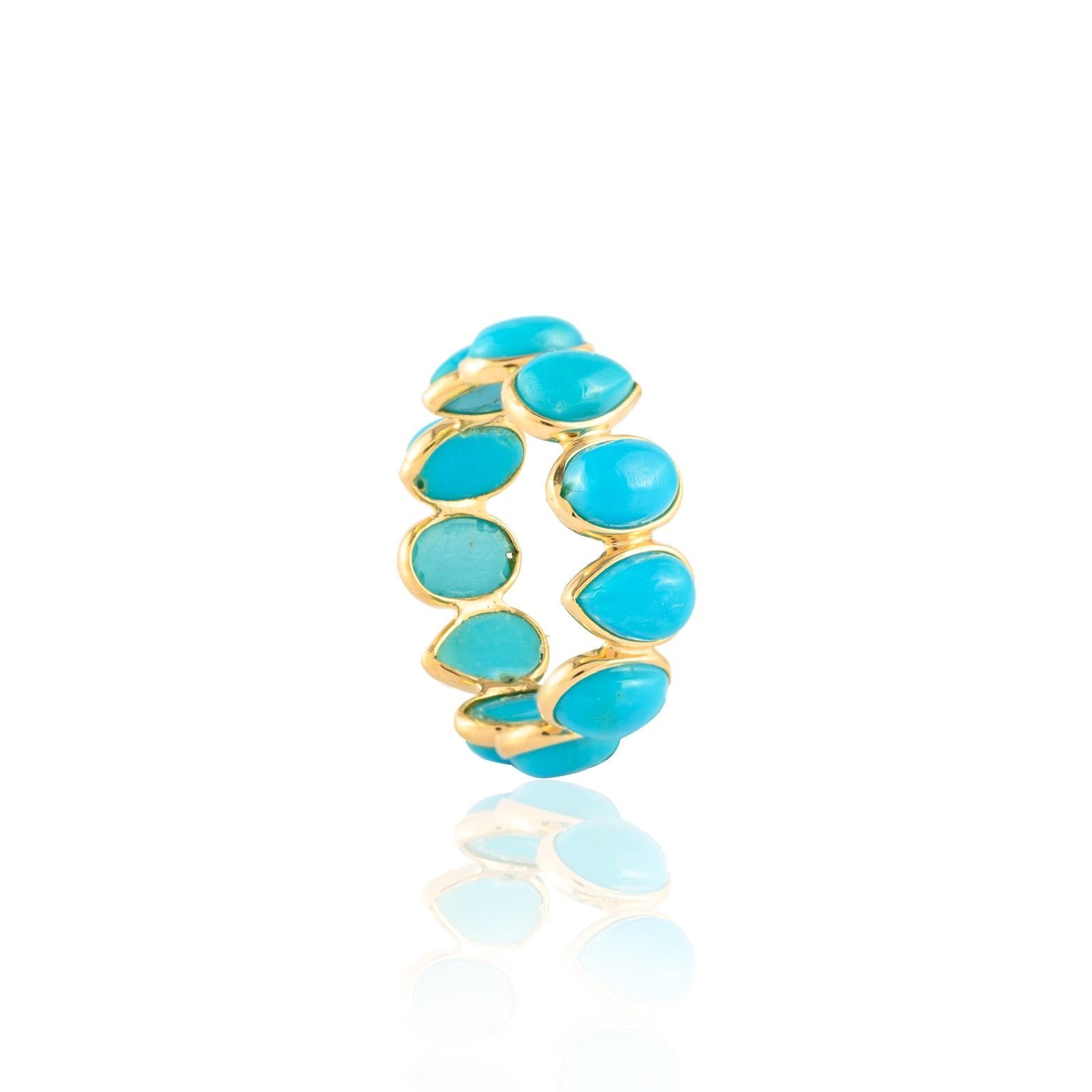 Chic 14K solid gold eternity band adorned with vibrant turquoise stones—crafted for timeless elegance, natural beauty, and everyday luxury.